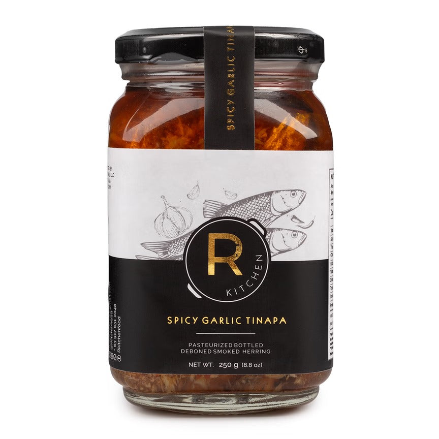 RKitchen is a brand that primarily sells a wide range of bottled gourmet Filipino food products, such as flavored tinapa, buro and tuyo, which are popular for their all natural ingredients and convenience.